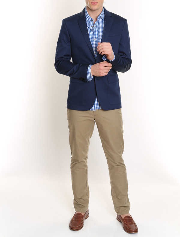 Straight leg chino. Back pockets with button closure. 14" leg opening. Zip fly. 100% cotton.